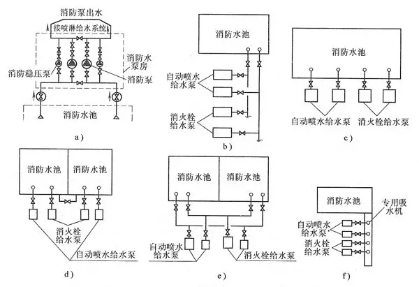 3)當(dāng)消防水泵和消防水池位于獨立的兩個基礎(chǔ)上且相互為剛性連接時,吸水管上應(yīng)加設(shè)柔性連接管。