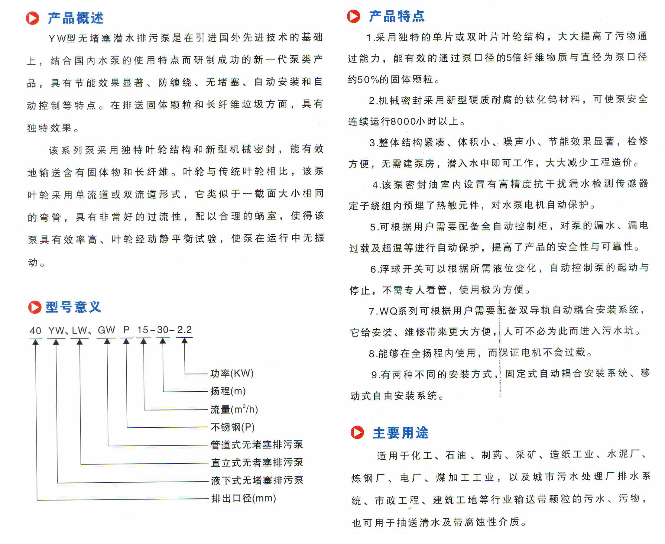 YW液下式堵塞排污泵